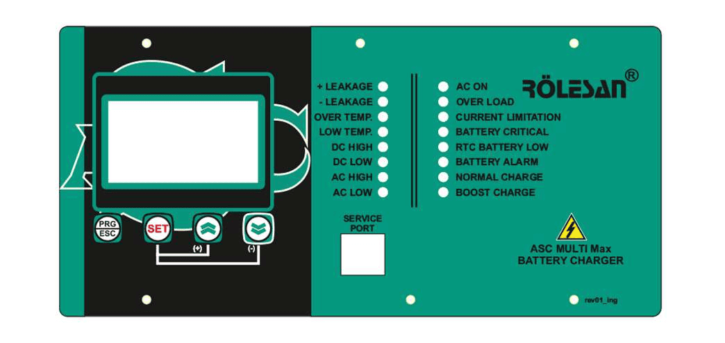 Current Limitation: When the battery output on the rectifier reaches the battery charging current value in the settings section, the LEDs becomes active and the rectifier starts to work in current limiting mode.