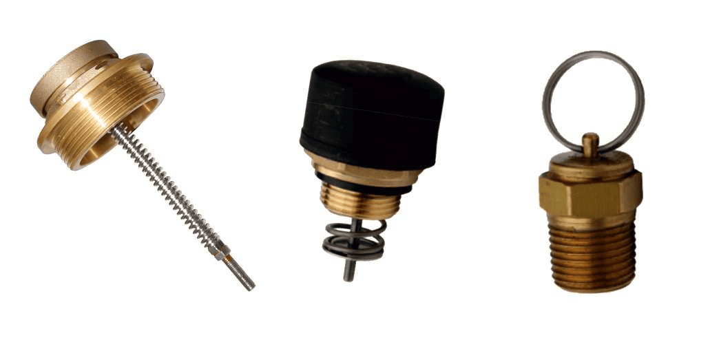 The PRD-25 pressure safety valve consists of a brass cap, a conical valve body, a rubber seal between the cap and body and a coil spring holding the whole system. As soon as relief pressure is reached, the valve cap lifts off and the excess pressure is relieved. The valve then shuts itself down again automatically. The valve can be infinitely set from 0.2 to 0.7 bar. The valve can also be equipped with a specially manufactured protective cap to prevent unauthorized operation of valve.
